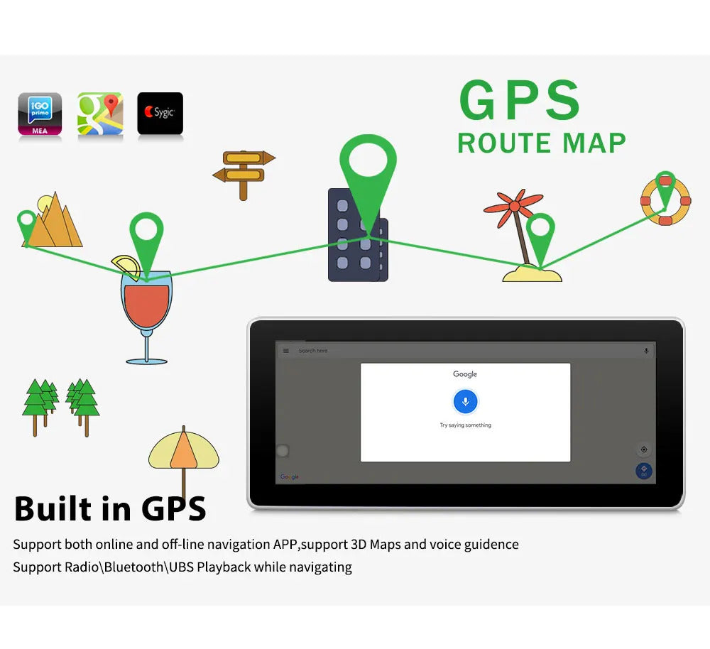 6.GPS navigation Apps, Google Maps, Waze and Apple Maps are all available, live traffic information