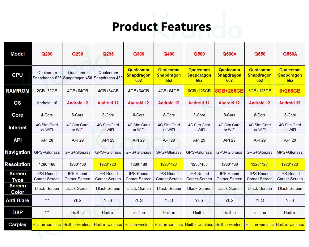 Krando BMW car multimedia player system parameters: