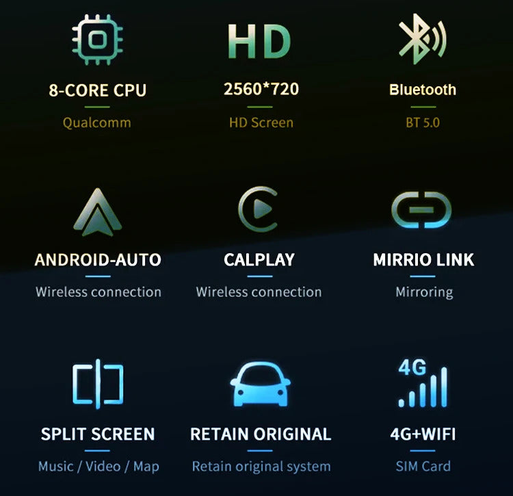 -Built-in wireless CarPlay+auto, install Apple phones via wireless network, install Android smartphones via Universal Serial Bus or wireless network.